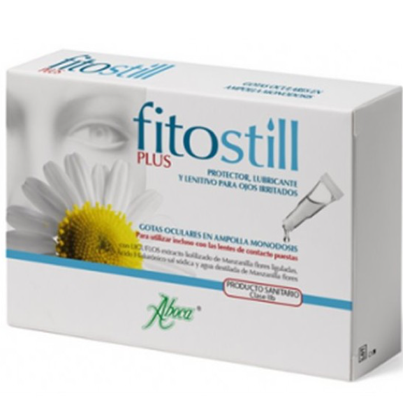 Gracias a la formación de una película protectora, mantiene una hidratación adecuada y permite el restablecimiento de la función natural lubricante de la "película lagrimal" del ojo. La sinergia de acción de los componentes de Fitostill brinda un efecto calmante y descongestionante al ojo irritado y puede ser usado tanto para aliviar las molestias como para prevenirlas. Fitostill gotas oculares está envasado en prácticas ampollas monodosis estériles, sin el uso de conservantes ni colorantes. La ligera coloración se debe al componente vegetal del Liguflos y al agua destilada de Manzanilla.