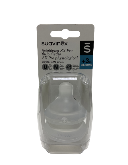 La tetina fisiológica SX Pro consigue que la lengua se mantenga en la misma posición fisiológica/natural que cuando el bebé mama del pecho. Creada teniendo en cuenta las particularidades bucodentales del bebé, cuyo maxilar y mandíbula están en pleno desarrollo. Cumple con las recomendaciones profesionales más avanzadas para no interferir en el desarrollo de la cavidad oral. Avalada por la Sociedad Española de Odontopediatría y recomendada por la Asociación Italiana de Especialistas en Ortodoncia.